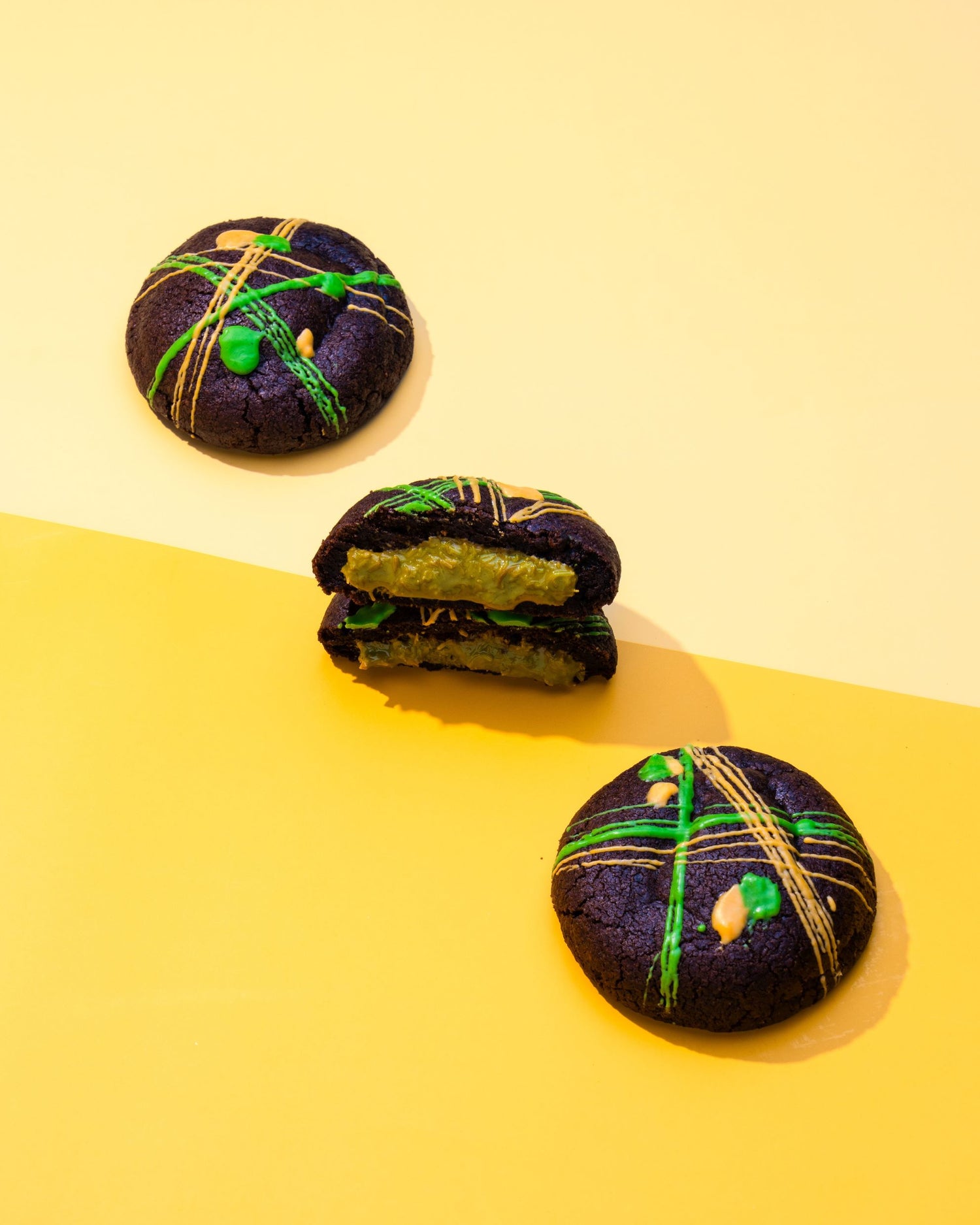 Inspired viral Dubai Kunafa chocolate sensation, these soft chocolate cookies are filled with the amazing combination of crunchy kataifi dough and rich creamy pistachio filling.